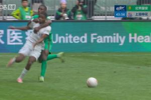体育资讯03月21日讯 中超第3轮,北京国安vs上海申花。比赛第43分钟,法比奥前场丢球后反抢,战术犯规一把拽住马纳法,被马宁出示黄牌警告。