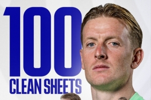埃弗顿在官方社交媒体上晒出皮克福德100场零封海报,并配文写道:“100场零封,难以置信,真是了不起的成就。”