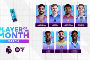 体育资讯3月26日讯 今日,英超联赛官方公布了3月最佳球员候选,B费、拉亚、维尔贝克、安东尼·戈登等7将入选。