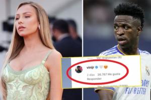 2022年6月份,维尼修斯被发现多次给埃克斯波西托的社媒点赞,并留下“?”“❤️”的评论,加上她住在马德里,迅速引发了两人恋情的绯闻。但随后埃克斯波西托发布了一条社媒:FAKE NEWS(假新闻),似乎否认了这条绯闻。