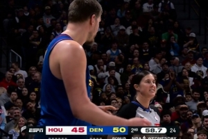 约基奇后场造投篮犯规裁判没给